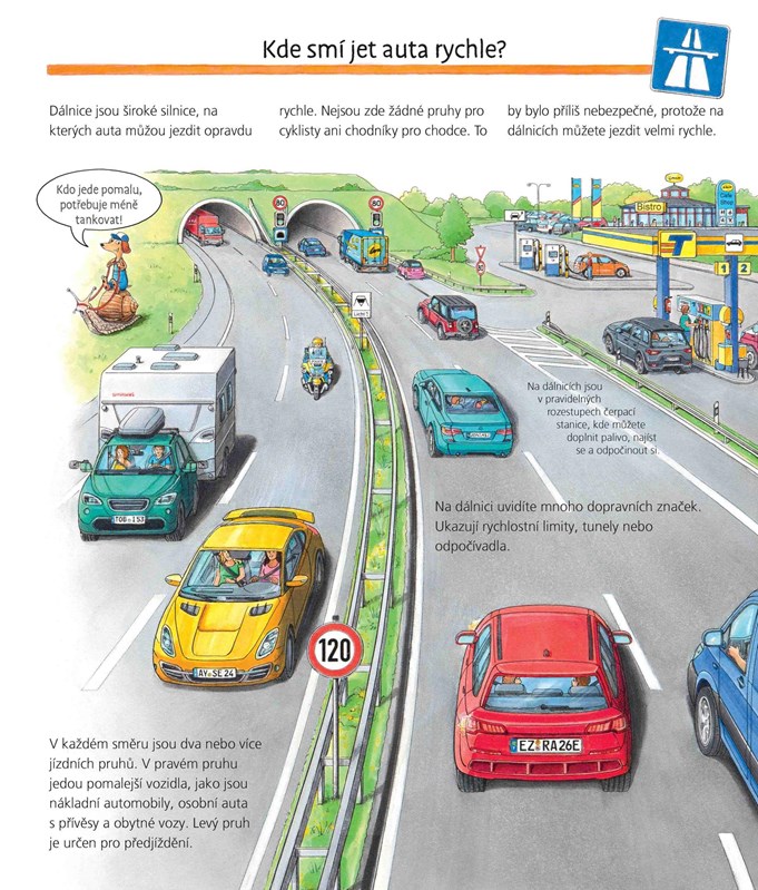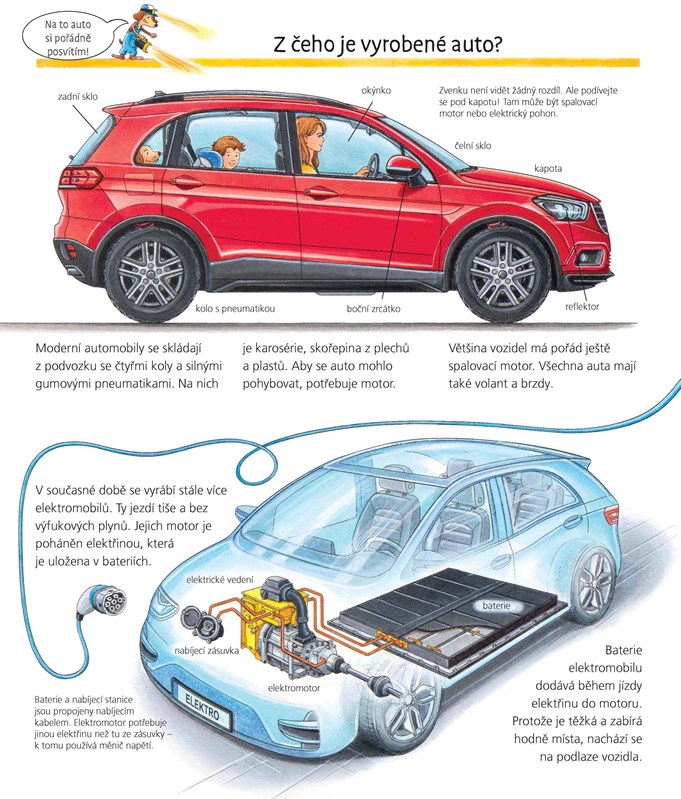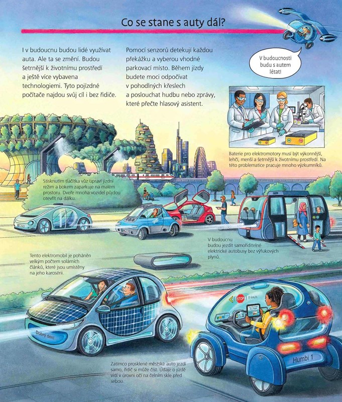 Z čeho se vyrábí auto? Jak funguje motor? A co je to sdílení aut? Vydejte se s námi na vzrušující jízdu světem motorů, z minulosti do budoucnosti, z obytné zóny až na dálnici. Kniha obsahuje interaktivní otevírací okénka.