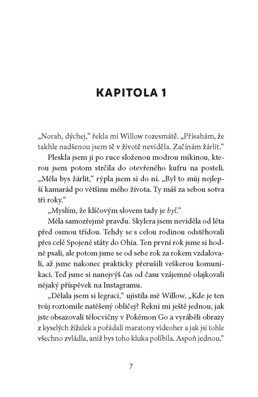 Norah neviděla svého nejlepšího kamaráda z dětství Skylera už roky. Když se odstěhoval, byli spolu neustále v kontaktu, ale v poslední době se jejich vztah omezil na vzájemné lajkování příspěvků na Instagramu. Proto se Norah nemůže dočkat výletu, který jejich rodiny naplánovaly na léto. Ale jakmile se konečně sejdou, zdá se, že by Skyler nejradši hned zmizel. Co za tím je? Společný road trip povede oba nejen po neznámých cestách, ale i k novým objevům. Nebude to snadná jízda, ale rozhodně bude stát za to… Může se na ní jejich přátelství, které téměř zmizelo, proměnit v něco víc?