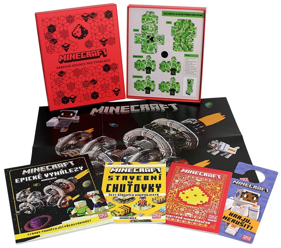 Nenechte si ujít perfektního průvodce vynalézáním v Minecraftu! Uvnitř atraktivního boxu najdete výběr toho nejlepšího z Ruditové příručky, z knihy s úžasnými Stavebními chuťovkami pro všechny stavitele a z inspirativních Epických vynálezů! Součástí kolekce je také velký plakát s vesmírnou tematikou, oboustranná visačka na dveře a taky papírový model Creepera!