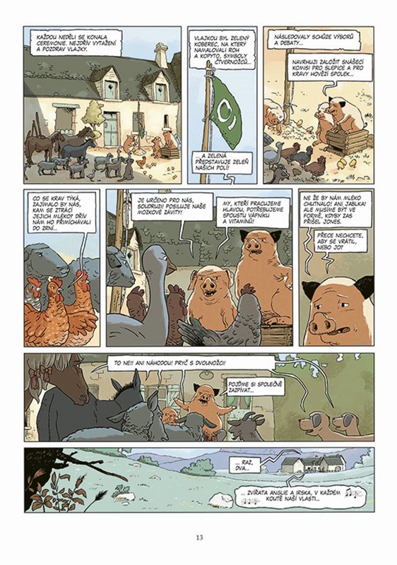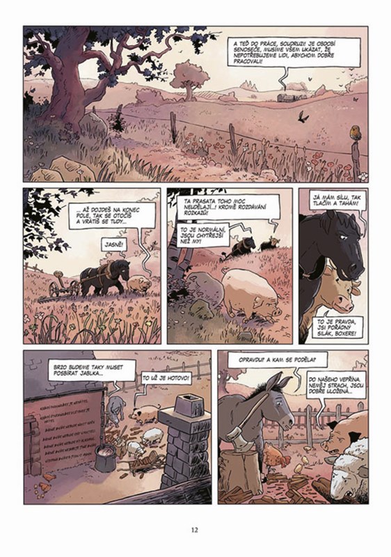 Farmu zvířat, možná nejslavnější dílo o vzniku diktatury, jaké kdy bylo napsáno, převedli zruční komiksoví tvůrci do čtivého, barevného příběhu. V této podobě poučí každého čtenáře o tom, co vždy hrozí lidské společnosti a čemu se musíme učit rozumět. Jinak se totiž může stát, že přijmeme roli obyčejných ovcí. Necháme si vládnout hamižnými prasaty a nezbude nám než přihlížet, až krutě zatočí například s odporem srdnatých slepic, které se pokusily přece jen bojovat za původní myšlenku svobody. Jak snadno rodí idealistické plány na přestavbu společnosti jen nové zlo a že demokracii je třeba hájit a na své zástupce neustále dohlížet, to je hlavní poselství bajky inspirované událostmi v sovětském Rusku minulého století.