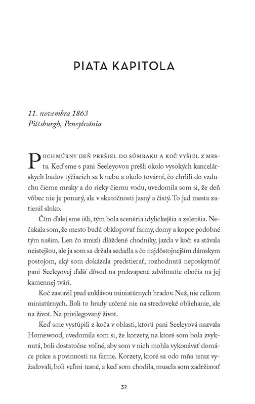 Clara Kelleyová nie je tá, za ktorú ju považujú. Nie je to skúsená írska slúžka, ktorá mala byť najatá na prácu v jednej z najbohatších domácností v Pittsburghu. Je to chudobná farmárova dcéra, čo nemá kam ísť a nemá vo vreckách nič. No druhá Clara zmizla, a tak sa jej ponúkla šanca predstierať, že je ona, a získať peniaze, ktoré bude môcť posielať domov.