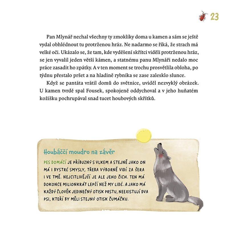 Druhý díl pohádkových příběhů houbových skřítků, kteří pomáhají ostatním lesním bytostem. Kniha obsahuje i kartičky na hru Houbeso a návod na kloboučkový tanec.