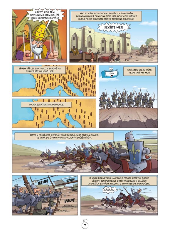 Vydejte se na fascinující cestu do historie lidstva. Doprovázet vás bude moudrý Maestro a jeho zvídaví, bystří a vtipní přátelé. Stoletá válka postaví francouzské království proti anglickému. Černá smrt a bitvy u Kresčaku nebo Poitiers poznamenají celé toto období. Navzdory všemu ale naši přátelští hrdinové pomohou vybudovat budoucnost a v boji se postaví po bok Johanky z Arku...