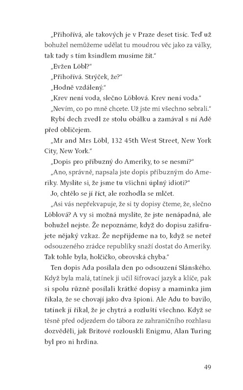 Je odvaha říct ano, nebo je odvaha říct ne? Mladá Židovka Ada si svůj život po válce představovala jinak. Byla nucena odejít z vysněné školy, stará se o nemocnou matku a zjišťuje, že komunisté mají s jejím původem stejný problém, jako měli nacisté. Když se jí naskytne příležitost svůj život změnit za cenu morálního selhání, stojí před těžkou volbou. Má říct ano a žít, jak chce, nebo říct ne a uchovat si čest? A má vlastně v té šílené době nad svým osudem nějakou moc?