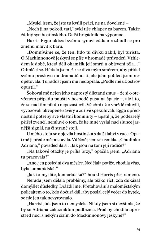 Daleko od skotského pobřeží se nachází ostrov Mull, mezi jehož obyvateli stále koluje řada pověr. Clarkovi se sem vydávají hledat nový život, když však jejich dcera zmizí, narážejí jen na lhostejnost místních. Rodiče si tedy najmou kanadskou soukromou vyšetřovatelku Sadie Levesqueovou. Ta už se setkala s ledasčím, po objevení brutálně zavražděné dívky v útrobách jeskyně ale zažije šok. Během vyšetřování se probouzí dávné mýty, legendy a pohanské rituály. Kam až bude Sadie při hledání vraha ochotná zajít?