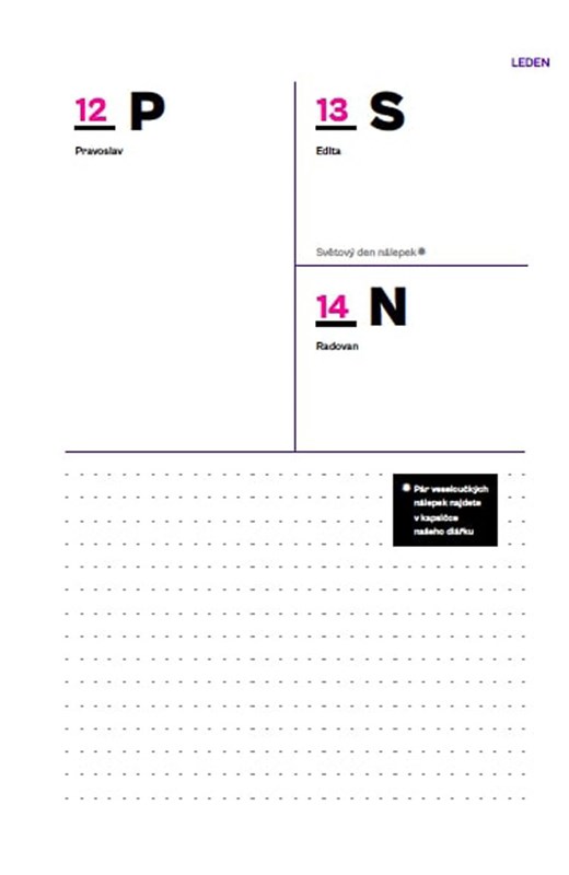 Demotivujte se s novým diářem od Veroniky Arichtevy, Nikol Leitgeb a Martiny Pártlové alias tria 3v1. Novej rok je na dohled a s ním nový měsíce, tejdny a neuvěřitelný mezinárodní dny, který prostě budete muset oslavit… Jak týhle náloži čelit, a nezbláznit se?! Klid! Nalistujte praktickej generátor výmluv, tipy, jak ztloustnout a bejt dál v pohodě, rady, jak se vyhnout sexu nebo naopak kam si za ním zajet, prostě podle svýho gusta, a budete mít jistotu, že rok 2024 vás v žádným případě nerozhází. Tak co, tak co?! Už je konečně leden???