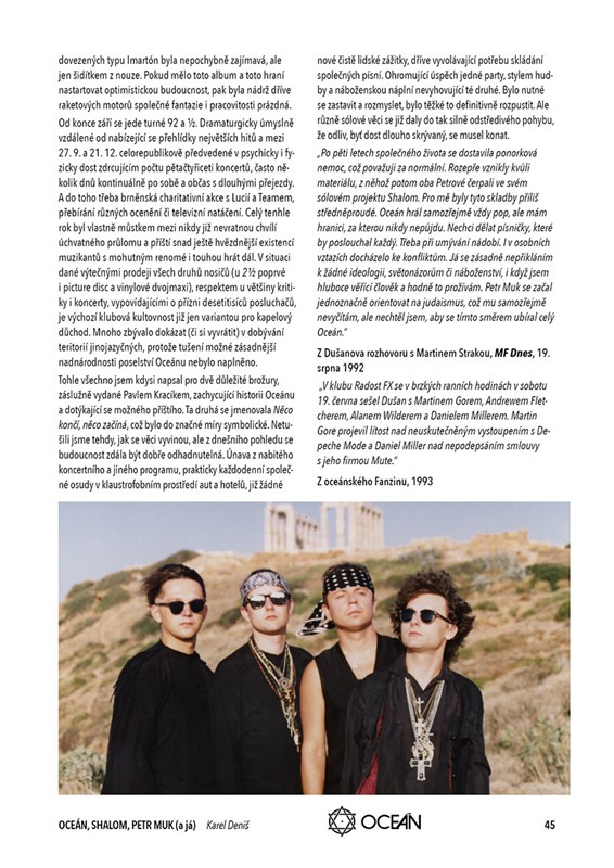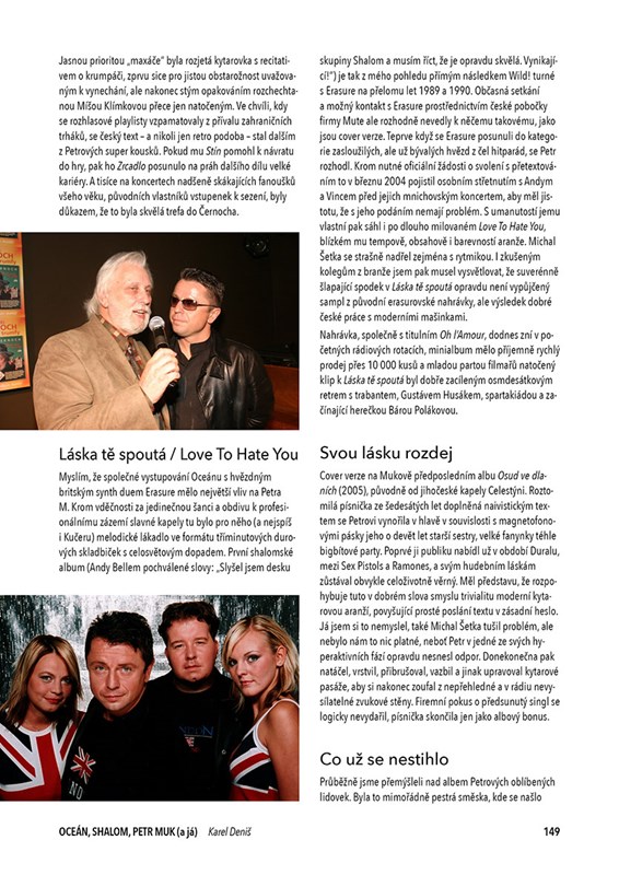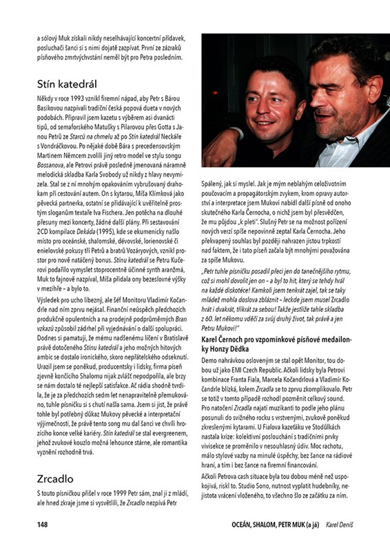 Kultovní synth kapela Oceán, duchovně orientovaný hitový projekt Shalom a několikanásobný Český slavík Petr Muk, jak to jde dohromady? Odpovědi na tyto i další otázky naleznete ve výpravné publikaci z pera Karla Deniše, dlouholetého spoluproducenta, konzultanta i kamaráda všech zmiňovaných veličin. Od punku přes alternativu a nový pop až k Mukově sólové dráze, výpravná koncertní turné, ve statisících prodaná alba, ale také krize, neúspěchy a lidské příběhy o bolesti duše… Jedinečné knižní vyprávění, doprovázené bohatou obrazovou přílohou včetně archivních materiálů, rovněž přináší širší pohled na hudební scénu (nejen) osmdesátých a devadesátých let.