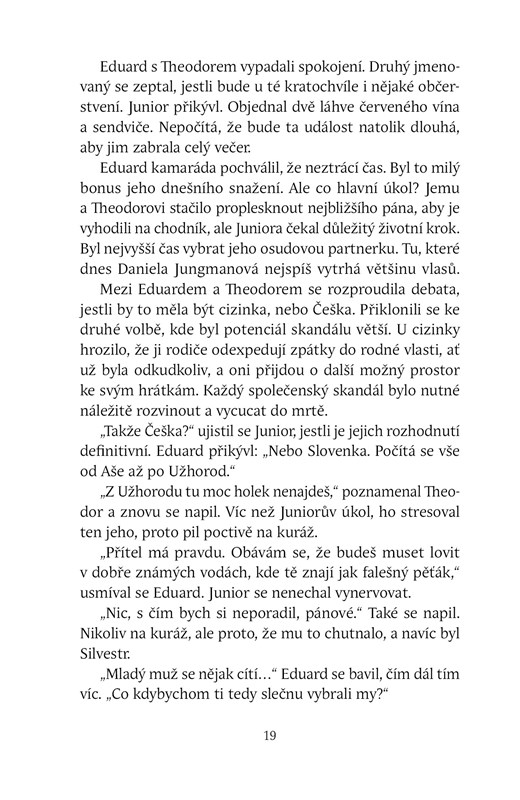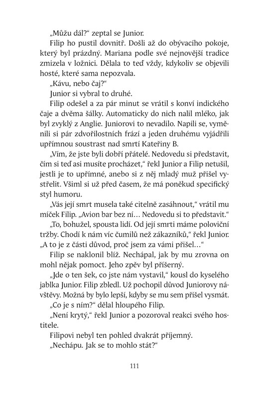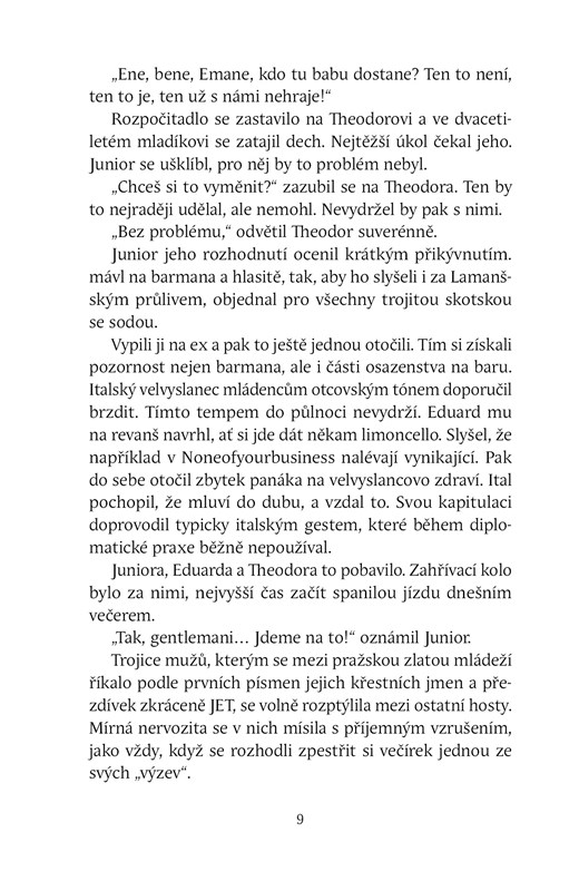 Silvestr 1929. Vybraná společnost na večírku britské ambasády se bezstarostně baví v očekávání nového roku. Krátce po půlnoci však hosty oloupí trojice maskovaných mužů. O tři dny později se okradeným šperky vrátí – všem, kromě Emily Vavřincové... Nenapodobitelná prvorepubliková éra se vrací i ve druhém případu netradiční detektivní dvojice, Emily a jejího komorníka Edgara. Spolu se vrhají do víru společenského života československé smetánky a budou čelit nečekané výzvě: komorník se poprvé v životě zamiluje a Emily je obviněna z vraždy! Vyváznou z toho oba se zdravou kůží?