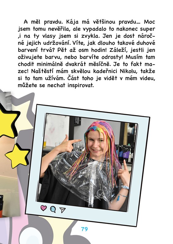 Dozvíš se tu o mně spoustu věcí. Zajímá tě zákulisí zpěvačky a jak to celé vzniká? Tak to jsi tu správně! Budu ti vyprávět svůj příběh od samého začátku, až po současnost. Společně odhalíme, jak vzniká nová image, zkusíš si rozhovor s novináři, v kvízu se dozvíš, co všechno máme společné nebo si společně se mnou vytvoříš vlastní emotikon!