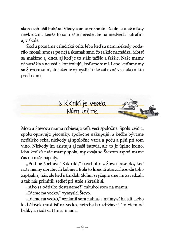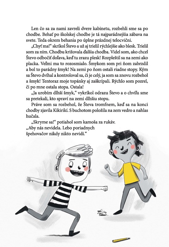 O Paľkovi a Števkovi hovorí celá škola. Lebo sú hrdinovia. Ale nebolo to tak odjakživa. Učitelia ich neznášali, lebo veľa vyrušovali, lietali po chodbách a nechýbali pri žiadnej lotrovine. Mamky učiteľky im za to pravidelne čistili žalúdok a Kikirikí ich chcela vyšvácať metlou. No a Medveď, to ako riaditeľ, ich dokonca chcel vylúčiť zo školy. Ešteže si to rozmyslel – škola by prišla o hrdinov a zločinec by možno dodnes behal po slobode...