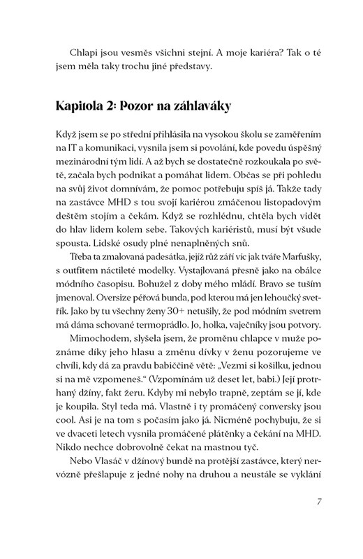 Onoho listopadového večera si na tramvajové zastávce jedna pětatřicetiletá, sarkastická, láskou a životem znavená žena uvědomí, že chlapů v jejím životě už bylo skutečně příliš. Výčet jejích tzv. „životních omylů“ je tak bohatý, že nás jimi baví celou knihu. Jak už to tak v knihách bývá, potká naše hrdinka dalšího muže. Zamiluje se (překvapivě). On ji zklame (jak nečekané). Ona se rozhodne změnit život a odjede na druhý konec světa a tam (světe, div se) potká dalšího chlapa. Kolik životních omylů může jedna žena udělat?