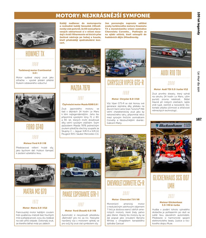 Legendární vytrvalostní závod 24 hodin Le Mans oslavil v tomto roce stoleté výročí a tato jedinečná, výpravná publikace mapuje kompletní historii jednoho z největších podniků světového motorsportu. Krásné a unikátní fotografie, přehledná infografika, legendární značky a týmy, nejslavnější jezdci, vhled do zákulisí, rekordy, tragické události, zajímavosti a perličky – zkrátka vše, co jste kdy chtěli vědět o fenoménu jménem Le Mans.
