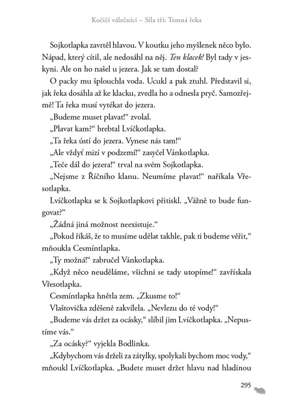 Lvíčkotlapka poruší válečnický zákoník a vydá se do tajemných podzemních tunelů, které vedou dál, než si kdy dovedl představit. Přestože kvůli nočním výpravám zprvu zanedbává své povinnosti, nakonec se mu během výcviku začne dařit. To platí i pro Sojkotlapku a Cesmíntlapku, kteří také rozvíjejí své schopnosti jako učedníci Hromového klanu. Přesto jejich povinnosti přinášejí nová nebezpečí a mladé kočky brzy objeví temnotu: v historii klanu i samy v sobě.