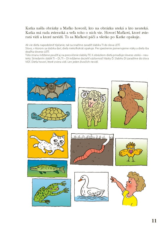 2) krátke príbehy so zvýšenou frekvenciou danej hlásky (možno ich využiť na upevňovanie novo vyvodených hlások a na napodobňovanie modulačných faktorov reči: rytmu, tempa, dynamiky)