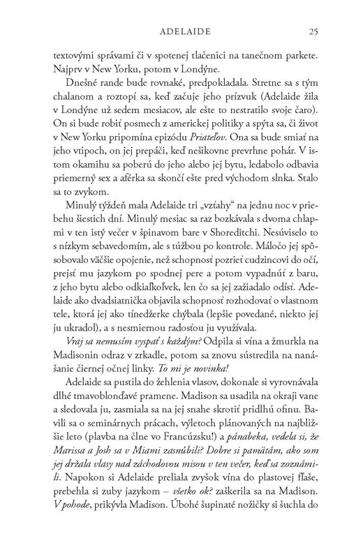 Dvadsaťšesťročná Američanka Adelaide Williamsová žije sen tisícov mileniálov. Vymetá londýnske bary, snaží sa dokončiť magisterské štúdium a získať prácu v oblasti PR, kde nebude musieť tráviť nekonečné neplatené nadčasy. A zamiluje sa. Do nádherného Roryho Hughesa, ktorý vyzerá ako princ z disneyovky. a pôsobí nedosiahnuteľne. Adelaide však vie, že ak sa bude trochu viac snažiť a trochu viac ho milovať, zabudne na jej malé chyby a bude ju milovať rovnako.
