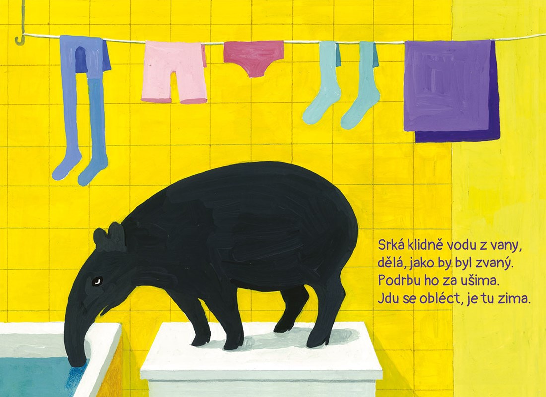 „Dovolíte, pardon hoši! Vedle skříně plné košil postávají čtyři hroši.“