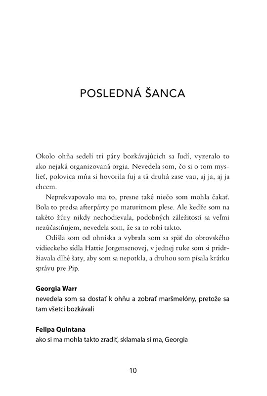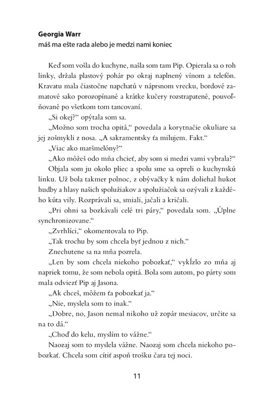 Poviem ti, že táto kniha ma doslova vtiahla do života dospievajúcich hneď od prvej strany. Je plná zamyslení, vtipných pasáží, poučení, ukazuje čitateľovi, aké dôležité (a naozaj náročné) je sebaprijatie a aký náročný je proces sebaobjavovania. Autorka správne poukázala aj na fakt, že človek z menšiny môže byť rovnako netolerantný ako človek z majority. Je to smutné, ale je to tak... Na jednej strane bolo zvláštne vidieť, čo všetko išlo hlavnej hrdinke v hlave a na druhej strane to bolo fascinujúce. Georgia mi bola sympatická od začiatku. Videla som, ako sa chce veľmi natlačiť do hraníc vytvorených spoločnosťou. Jej vnútorný boj, pochopenie a prijatie autorka vymyslela a napísala veľmi dobre. A poznámka na záver - veľmi sa mi páčili odkazy na piesne, knihy a filmy počas celého deja.
