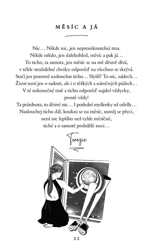 Sbírka básní odkrývající myšlenky, o kterých se běžně nemluví. Upřímná zpověď obyčejných holek, procházejících si psychickým onemocněním, které se nebojí mluvit otevřeně o duševním zdraví.