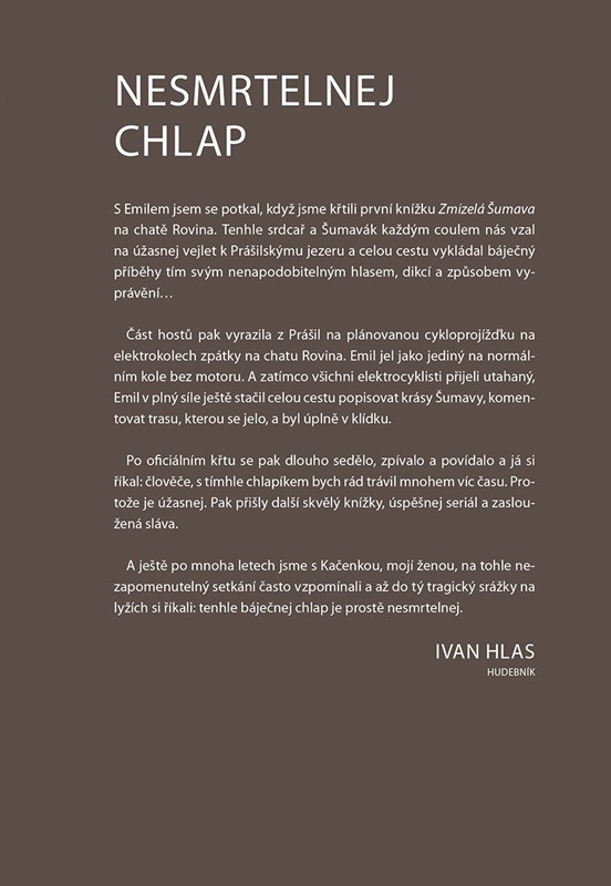 Emil Kintzl na Šumavě strávil celý život a neúnavně sbíral příběhy míst, která se už ztratila z mapy. Jeho osobité vyprávění a vtipné i laskavé historky v podání režiséra Jana Fischera s velkým citem pro jazyk vykreslují obraz tohoto legendárního šumavského patriota. Vzpomínají na něj také jeho blízcí, přátelé a osobnosti jako Zdeněk Svěrák, Ivan Hlas nebo Václav Kopta. Vznikla tak malebná koláž nesmírně pestrého osudu, který trval bezmála devadesát let. Text doprovází velké množství archivních fotografií.