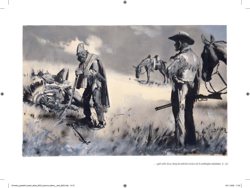 Posledním výstřelem končí jeden z nejslavnějších příběhů dobrodružné literatury. Mezi vyprávěním prvních příhod Vinnetoua a Old Shatterhanda v první osobě a mezi konečným uspořádáním celého cyklu, se jménem apačského náčelníka v titulu, uplynulo téměř dvacet let. Vznikl tak pestrý a nesourodý celek, který právě tím působí velice věrohodně a poutavě. Převyprávění Vítězslava Kocourka napsané s respektem k Mayovu původnímu textu je dnes považováno v českém kontextu za bezmála klasické. Třetím svazek je též uzavřeno nové vydání Vinnetoua v rámci edice KOD, kde tato trilogie vychází s úplným ilustračním doprovodem Zdeňka Buriana poprvé.
