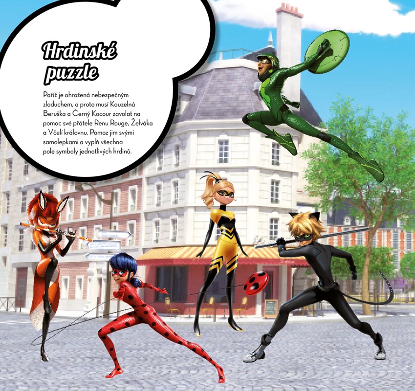 Vstupte s námi do napínavého světa Kouzelné Berušky a Černého Kocoura! Podaří se našim dvěma hrdinům porazit všechny padouchy v čele s Lišajem? A v koho se promění jejich kamarádi? Tvořte svět Marinette a Adriena pomocí samolepek a proměňte je v Kouzelnou Berušku a Černého Kocoura. 31 cool scén z oblíbeného televizního seriálu.
