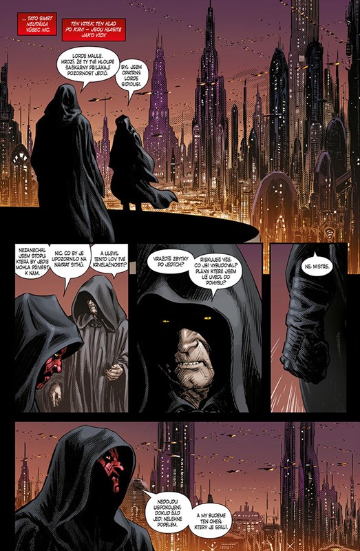 Darth Maul netrpělivě vyčkává ve stínech, až bude moci zaútočit na nenáviděný řád Jedi. Krvežíznivý Sith však příliš nevěří v plánování svého mistra. Mohl Maul kráčet i jinou cestou, nebo mu byla vždy souzena ta temná? O několik let později pak záludnému Darthu Sidiousovi slouží metodický hrabě Dooku a buduje síť intrik i spojenců v zapadlých koutech galaxie. I nečekané setkání s rytířem Jedi předvídavě využije ve svůj prospěch…