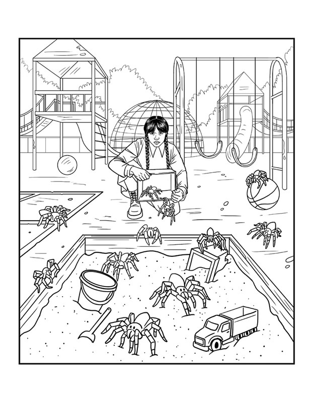 Lusknite prstami, prasknite bublinu z čiernej žuvačky, vzoprite sa a vyfarbite si dobrodružstvo bez štipky úcty inšpirované Wednesday.