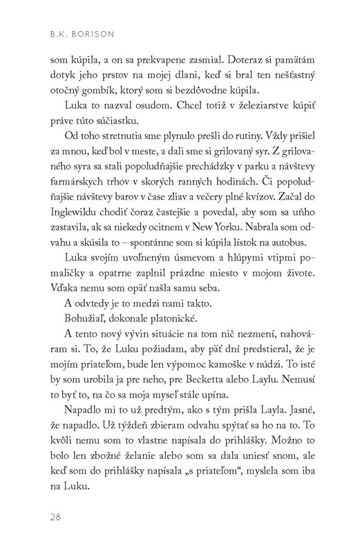Do hry tak vstupuje jej najlepší kamarát Luka Peters. Požiada ho, aby sa na jeden týždeň zmenil na jej snúbenca. Aby mohla predstierať, že je doňho zamilovaná už desať rokov. A musí sa veľmi snažiť, aby sa neprezradila, že ho ľúbi naozaj. Bolo by také krásne, keby Luka cítil to isté...
