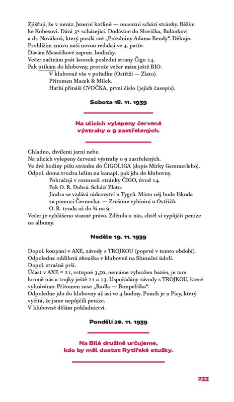 Druhý svazek výboru z deníků přináší jedinečnou příležitost nahlédnout do života legendárního spisovatele a skauta v době na začátku druhé světové války. Přestože válka přinesla těžké časy, Foglar zažívá jedno z nejplodnějších období své kariéry. V letech 1938–1941 působí jako redaktor Mladého hlasatele a s Karlem Burešem z něj vytvoří nejúspěšnější časopis pro mládež. Stvoří přes sto komiksových stran s Rychlými šípy. Za měsíc napíše knihu Pod junáckou vlajkou a vyjdou mu další tři nové romány i jedna divadelní hra. Zápisky z těchto let však zachycují nejen pracovní úspěchy, ale i vnitřní pochybnosti, únavu a smutek, které autor prožíval.