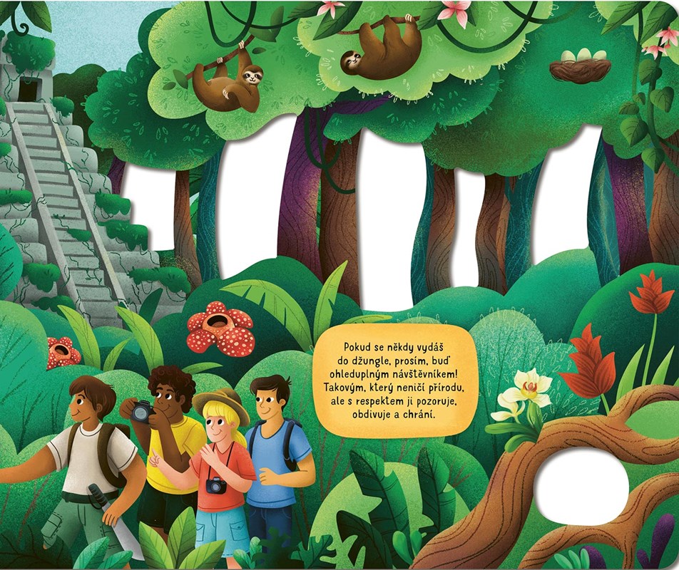 Málokterá místa na Zemi jsou opředena tolika tajemstvími a tolik lákají k prozkoumání jako právě džungle. Neprostupné houštiny, hemžení drobných tvorečků i velikých šelem, roztodivné zvuky, barvy a omamné vůně, to všechno spatříš a zažiješ jedině v džungli. Pojď se tu trochu porozhlédnout a zjistit, jak se tu žije zvířatům a jak lidem nebo proč je tak důležité džungle chránit.