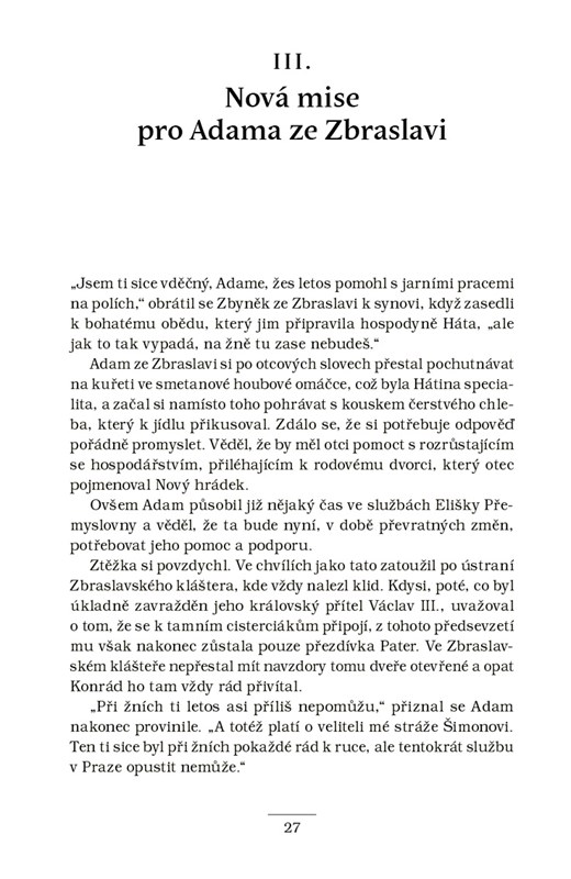 Adam ze Zbraslavi se vydává rozplést záhadné vraždy a útoky, které ohrožují diplomatická jednání o s...