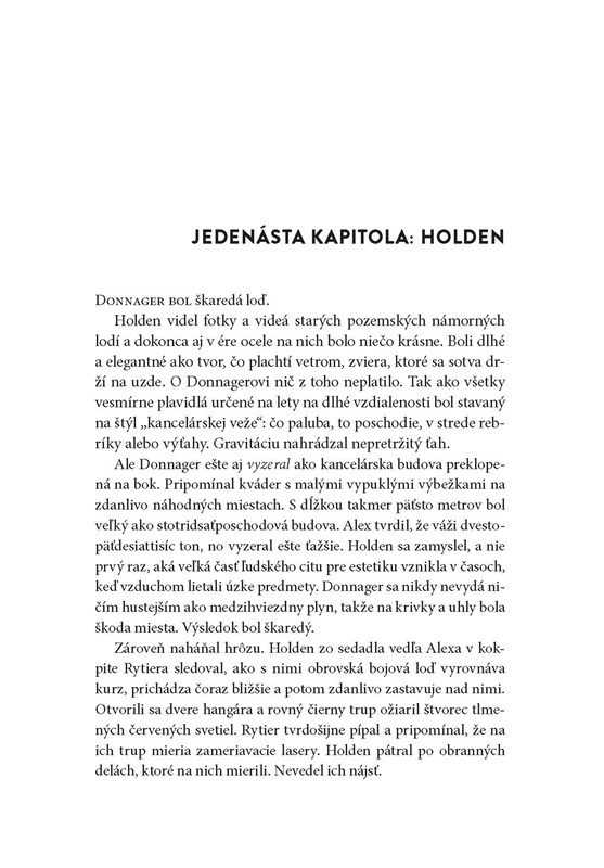 Nebudeme si klamať, generických space opier s majestátnymi súbojmi vo vákuu tu už bolo habadej. Čo teda knihu Jamesa S. A. Coreyho odlišuje od ostatných podobných diel? Jednoznačne priamočiarosť a dôraz na akciu. Naopak to, na čo sme pri vedeckej fantastike zvyknutí – a síce detailné opisy spoločenského a politického systému – tu vo veľkej miere absentuje. Pekne sa to dá aj bez nich.