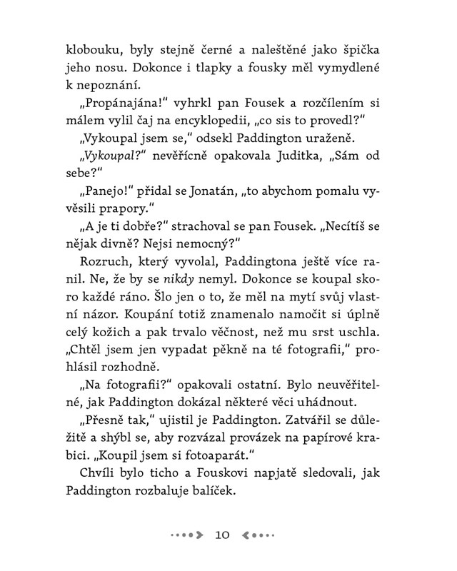 Paddington, medvídek z nejtemnějšího Peru, se spokojeně zabydluje u rodiny Fouskových v Londýně. Svými ztřeštěnými nápady mnohdy převrátí celý dům vzhůru nohama a Fouskovi se nestačí divit. Medvídek se totiž mimo jiné pustí do fotografování, vymaluje si pokoj, uspořádá ohňostroj, vyšetří detektivní případ, a jak se dá očekávat, úplně poklidně neproběhnou ani Paddingtonovy první Vánoce.