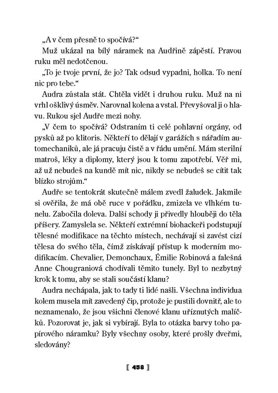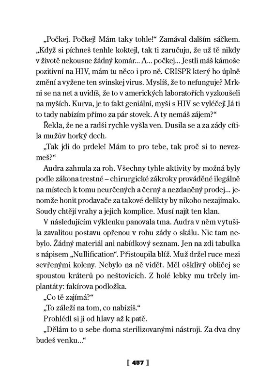 Moderní technologie jsou všude… a děs jim jde v patách jako stín. Sharkův tým se potýká se zlověstnými událostmi. Těhotná mladá žena, která za vysokou cenu pronajala svou dělohu bezdětnému páru, hned po svém příjezdu do hotelu zmizí z pokoje. Na dně jámy vykopané v lese je nalezeno zohavené tělo. Policii uniká muž, který zná den i hodinu své smrti. A nakonec přijde dopis, zlověstný manifest zkázy. Franck Sharko a Lucie Hennebellová se pouštějí do temného závodu. Hodiny tikají, peklo právě přichází.