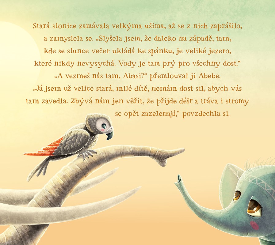 Malý slon Abebe si užíval radostné dětství kdesi v dálné Africe. Každý den se společně s kamarády válel v kalužích osvěžujícího bláta a všichni byli špinaví až za ušima. Koupali se a hráli si v malých jezírkách s průzračně čistou vodou. Jenomže jak dny plynuly, kaluže mizely a voda v jezírkách se ztrácela, až nakonec úplně vyschla. Sloník Abebe se spolu s několika dalšími zvířaty rozhodne vydat na dalekou cestu. Povede se jim najít životodárnou vodu?