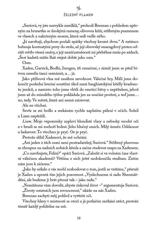 Všichni, včetně Violet samotné, očekávali, že během prvního ročníku na Basgiathské válečné akademii zemře. Přežila, ale skutečný výcvik – brutální a extrémně vyčerpávající – je teprve před ní. A spolu s ním i výzva v osobě nového zástupce velitele, který si dal jediný cíl – ukázat jí, jak vypadá absolutní bezmoc. Violet se už naučila, že odhodlání přežít a odvaha měnit pravidla dokážou mnohé. Bude to ale stačit, když ví, že Basgiath ukrývá prastaré tajemství, které může všechny a všechno zničit?