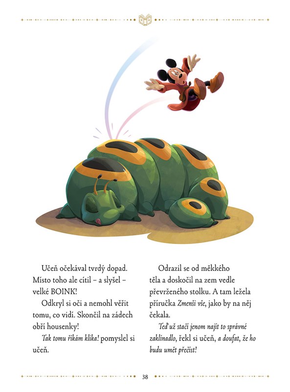 Prozkoumejte všechna zákoutí tajuplného hradu a vyzkoušejte si s Mickeym jeden den ve službách mocného kouzelníka! Oblíbeného myšáka čeká plno podivuhodných dobrodružství s magickou knihou, ale musí ji vrátit do knihovny dřív, než se čaroděj vrátí domů! Přečtěte si, jaké neuvěřitelné příhody malý učeň zažil a jak objevoval kouzlo levitace a zmenšování. Nádherně ilustrované pohádkové vyprávění potěší všechny milovníky dobrých příběhů, než půjdou na kutě.