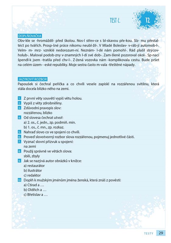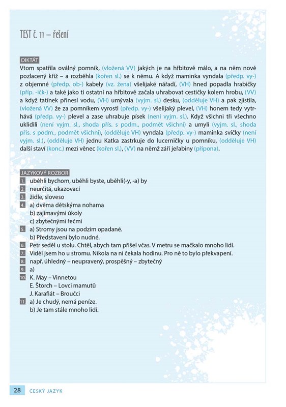 Vyzkoušejte si příjímací zkoušky na osmiletá gymnázia nanečisto. Své znalosti z českého jazyka si díky této přehledně uspořádané cvičebnici, která obsahuje diktáty, opravná cvičení a jazykové rozbory, můžete ověřit s předstihem. Správná řešení najdete za každým testem.