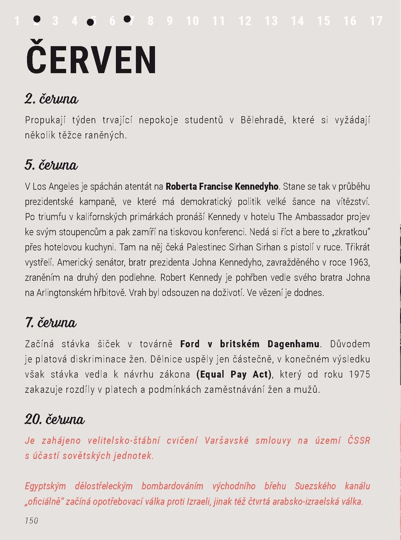 I v těch nejvypjatějších okamžicích dějin žijí lidé své každodenní životy – nakupují, chodí do kina, scházejí se v kavárnách i hospodách, sportují, pracují…Kniha, kterou držíte v ruce, vám ukáže rok 1968 z trochu jiného úhlu. Přečtete si, čím se lidé tehdy bavili, jaká divadelní představení hýbala kulturní veřejností, co se nosilo a proč z oběhu mizely tříkorunové mince.