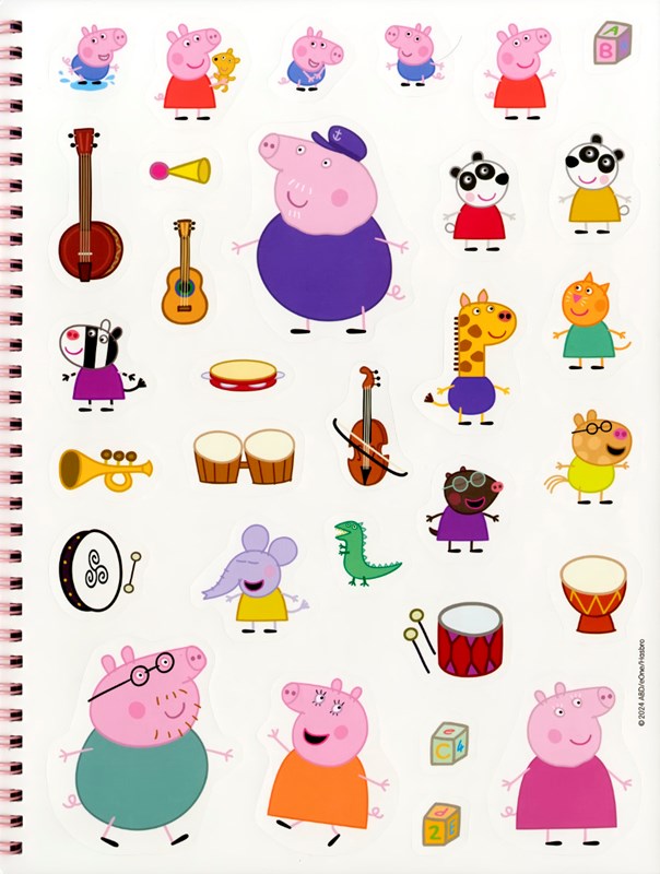 Vezměte šablonu a dokreslete Peppě korunku, spoustu balonků na velkou oslavu nebo helmu pro zapomnětlivého cyklistu. Pak obrázek dozdobte samolepkami. Čeká na vás 40 stránek s barevným pozadím a je jen na vás, čím je oživíte!