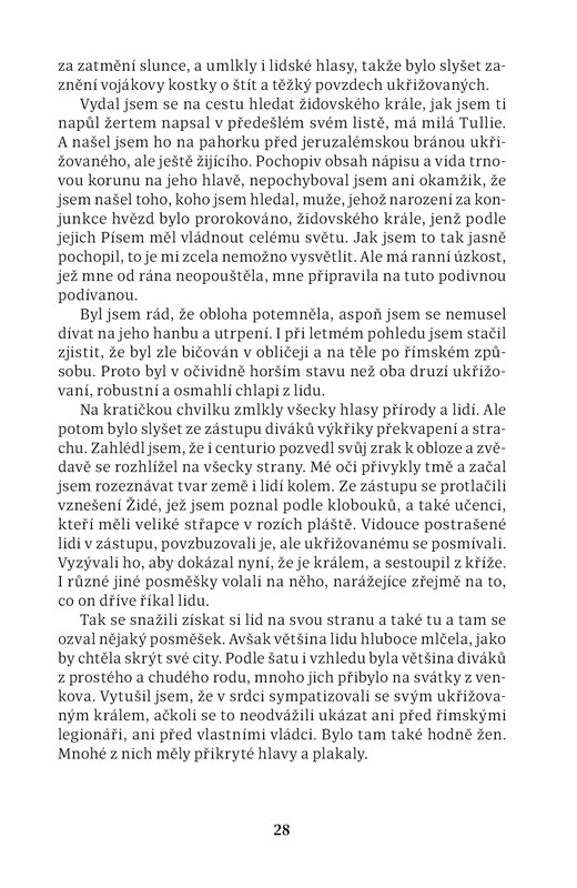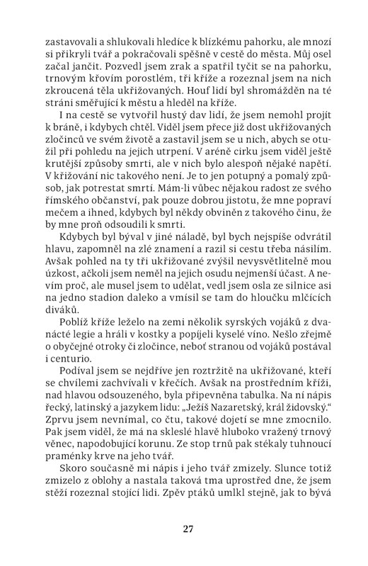 Historický román slavného finského spisovatele Miky Waltariho pojednává o navýsost dramatickém okamžiku lidských dějin – o ukřižování Ježíše Krista. Vypravěčem románu je Říman Marcus Manilius Mezentianus, který se před nešťastnou láskou uchyluje do vřavy Jeruzaléma a stává se zde svědkem Ježíšovy smrti. Je zasažen hloubkou jeho poselství a s detektivní posedlostí pátrá po smyslu jeho slov a činů. Setkává se s jeho učedníky, Marií z Magdaly, Šimonem z Kyrény, Lazarem a ostatními svědky zázračného Ježíšova působení na jeho současníky. Poté, co je jako Říman apoštoly vyloučen z řad vyvolených, nachází sám sebe v pokoře a dobrotě srdce. Stejně jako v jiných svých dílech, i zde Mika Waltari mistrovsky přibližuje dávné události a jejich kulturní a ideologické kořeny. Ožívají zde historické reálie římské, egyptské, asyrské a židovské. Průvodce dějem je vzdělaný nezávislý pozorovatel, který díky čistému a noblesnímu vztahu k lidské individualitě je i pro dnešní čtenáře přesvědčivým zprostředkovatelem dávného poselství o vznešenosti lidského údělu. Proto jsou v jeho podání i vzdálená podobenství aktuální naléhavou potřebou lásky a milosrdenství.