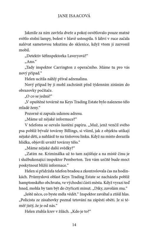 Když je v polorozpadlé továrně nalezeno zohavené tělo policistky, hamptonshirská policie je v šoku. Detektiv šéfinspektorka Helen Laveryová se po vynucené pauze vrací do práce a okamžitě se vrhá do vyšetřování případu, jaký ještě nezažila. Šlo o náhodný útok, nebo se někdo zaměřuje přímo na policisty? Byla to práce organizované zločinecké skupiny, nebo jediného zabijáka? Helen se blíží k šokující pravdě a nikomu už nevěří. Čelí totiž zvrácenému vrahovi, který je ochoten zajít mnohem dál než kdokoli jiný.