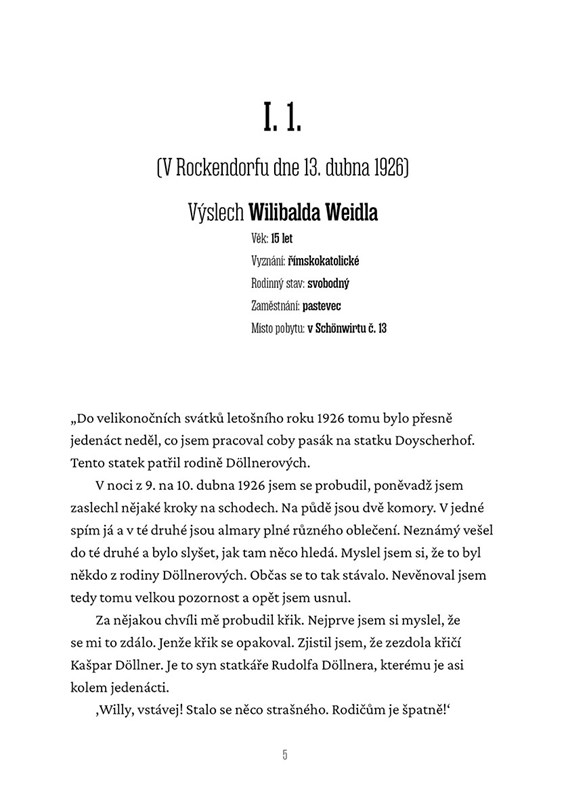V noci z 9. na 10. dubna 1926 se neznámý pachatel vloupal do statku Doyscherhof, kde začal bez milosti bít sekyrou spící rodinu. Nejdříve dospělé… potom děti. Vrah si však nevšiml, že pod tělem otce bylo ještě jedno dítě, které se později stalo hlavním svědkem. V této originální detektivce založené na skutečném prvorepublikovém případu budete hlavním vyšetřujícím vy. Postupně se před vámi složí mozaika mrazivého příběhu a nakonec se stanete svědky procesu, který tehdy neměl obdoby.