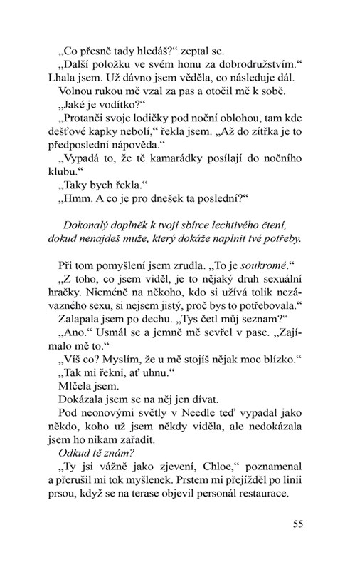 Než mě začnete soudit (já vás *vidím*), v té době jsem nevěděla, že je to můj šéf. Věděla jsem pouze to, že to byl ten nejpřitažlivější muž, kterého jsem kdy viděla, k tomu přidejte britský přízvuk a rty, které se na celé hodiny zmocnily mého těla.