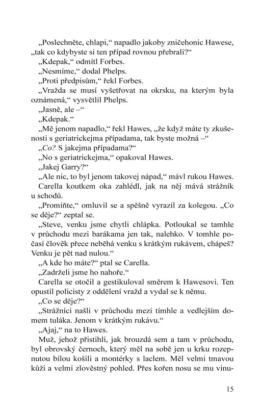 V 87. okrsku je objeven starý muž s těžkou sekerou zaklíněnou do lebky. Pátrání detektivů Hawese a Carelly vede do slepé uličky, vraždící bestie však udeří znovu. V té chvíli případ nabere nový směr a spád. Podaří se mužům zákona zastavit šílence dřív, než bude pozdě? To se dozvíte v jednom z nejzdařilejších detektivních románů Eda McBaina.
