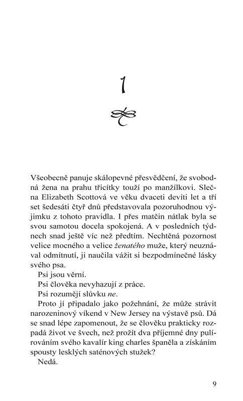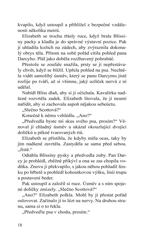 Elizabeth Scottová nesnáší bohaté, mocné a nabubřelé muže, vždyť kvůli jednomu takovému musela opustit vytoužené místo učitelky na exkluzivní manhattanské škole. A tak není divu, že když potká pohledného a očividně dobře situovaného Donovana Darcyho, automaticky ho považuje za arogantního a přezíravého protivu, za ukázkový exemplář snoba, jemuž je nejlepší se oklikou vyhnout. Navíc je to chladný a sarkastický Angličan s bezchybným windsorským uzlem na kravatě a manžetovými knoflíčky od Tiffanyho! Jenže ať už za to může náhoda, osud, společná láska ke psům nebo duch Jane Austenové, jejich cesty se neustále kříží…
