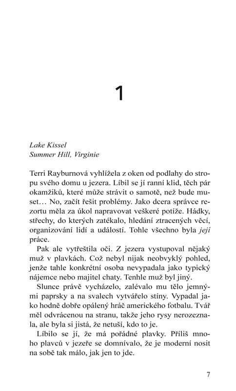 Terri Rayburnová je dívka s jistou pověstí. Nezaslouží si ji, ale protože vyrostla na předměstí Summer Hillu, ví, jak to na maloměstě chodí. Jediný způsob, jak se vypořádat s klevetami, je ignorovat je. Takže si hledí svého a vede letní resort u jezera Lake Kissel.