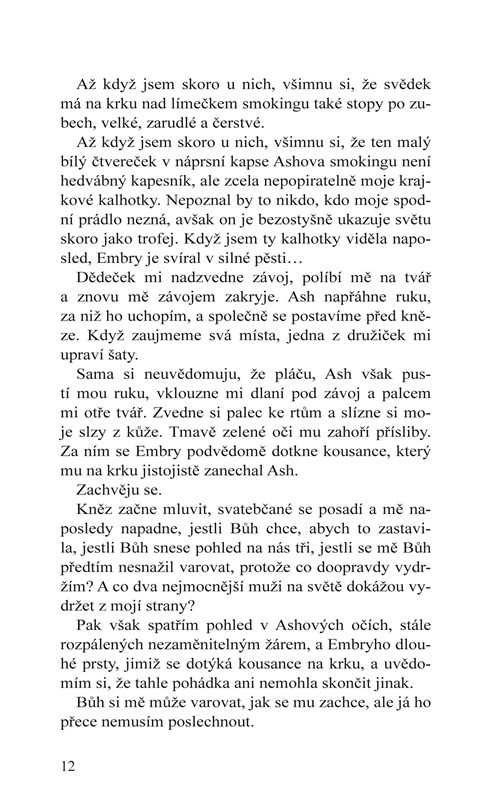 Začalo to polibkem ukradeným pod anglickou oblohou a skončilo cestou k oltáři. Začalo to tím, že americký prezident vyslal nejlepšího přítele, aby mě pro něj získal, a skončilo to mým srdcem rozeklaným vedví. Začalo to pohřbenými tajnostmi a nebezpečnými touhami… a skončilo u nás tří. Spojila nás láska plná nenávisti, láska ostřejší než břitva.