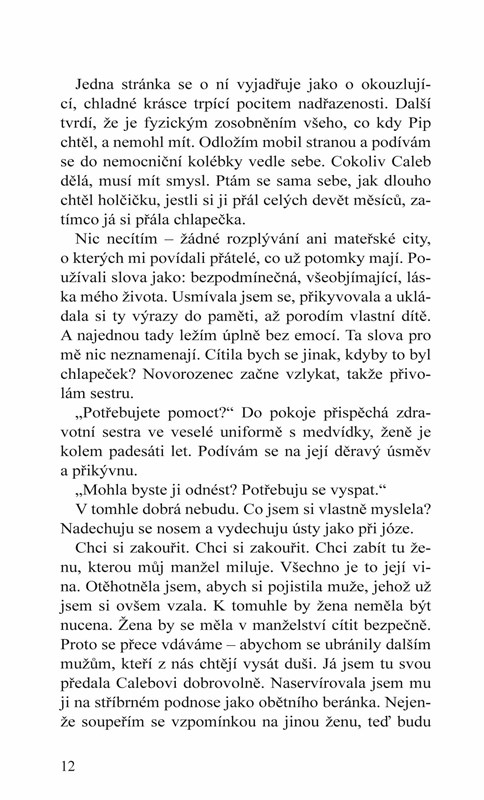 Leah Smithová má všechno, po čem kdy toužila. Ovšem ne tak docela. Její manželství by se dalo přirovnat spíš k půjčce než k dlouhodobé oddanosti a image, na které usilovně pracovala, se jí začíná rozpadat pod rukama. S novou životní rolí a minulostí plnou tajností se musí Leah rozhodnout, jak daleko je ochotná zajít, aby si udržela to, co dřív ukradla jiné ženě.