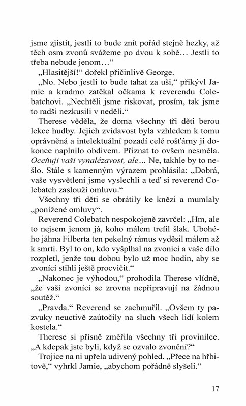 Při tom dobrodružství poznává místní lidské osudy a zvládá přitom dělat i dohazovačku, což je její celoživotní koníček. Zatímco se Therese daří úspěšně sbližovat krásnou slečnu Eugenii Fitzgibbonovou a zasmušilého samotáře lorda Christiana Longfellowa a současně zajistit dětem báječnou zábavu a dobrodružství, v pátrání po husím hejnu nedělá žádné pokroky. Vánoce se rychle blíží a málokdo věří, že se husy objeví včas, aby vesnice nepřišla o tradiční vánoční hody. Lady Therese Osbaldestoneová se na svém venkovském sídle opravdu nenudí."